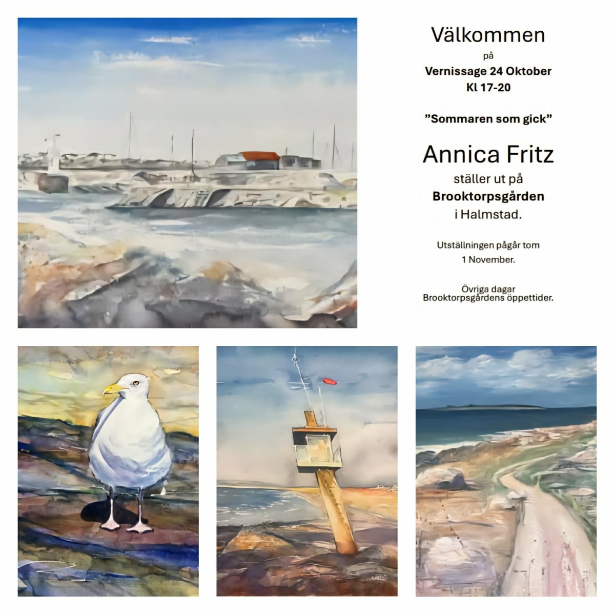 Den 24 oktober, kl 17-20, är du välkommen på vernissage "Sommaren som gick". Utställningen visas på Brooktorpsgården i Halmstad och pågår till och med den 1 november.https://brooktorpsgarden.se/
